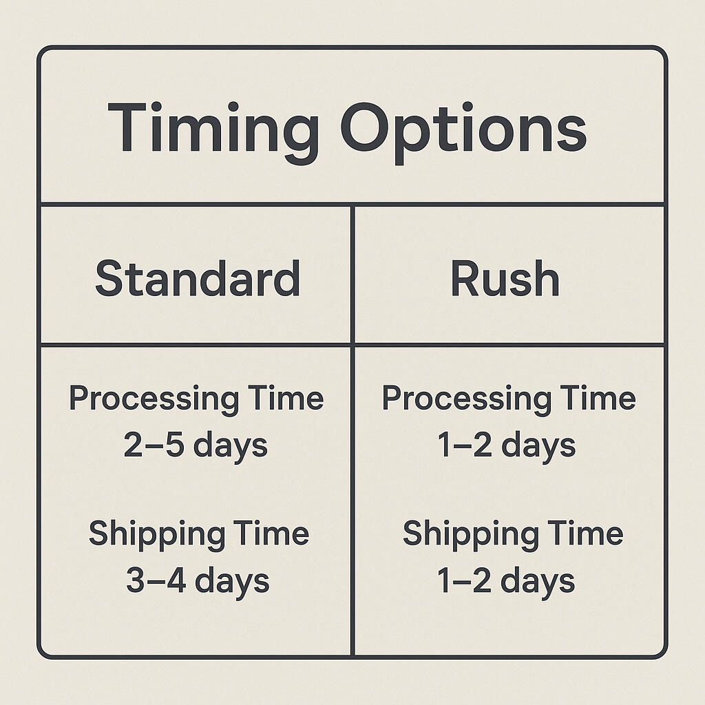 | Service Level | Avg. Processing Time (in Sacramento)* | Avg. Shipping Time* |